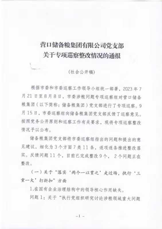 營(yíng)口儲(chǔ)備糧集團(tuán)有限公司前身是營(yíng)口市第一糧庫(kù),成立于1956年,是擁有60余年發(fā)展歷程的老國(guó)有企業(yè)。2015年,按照市委、市政府關(guān)于國(guó)資國(guó)企改革的有關(guān)意見(jiàn),改組成立營(yíng)口儲(chǔ)備糧集團(tuán)有限公司(國(guó)有獨(dú)資),出資人為營(yíng)口市人民政府國(guó)有資產(chǎn)監(jiān)督管理委員會(huì),現(xiàn)承擔(dān)省、市兩級(jí)糧油儲(chǔ)備任務(wù)。集團(tuán)下設(shè)黨辦、辦公室、財(cái)務(wù)審計(jì)部、儲(chǔ)運(yùn)安保部、綜合業(yè)務(wù)部5個(gè)職能部門(mén)和一個(gè)生產(chǎn)一線(xiàn)部門(mén)機(jī)修車(chē)間;下轄遼寧省營(yíng)口糧食儲(chǔ)備有限公司、營(yíng)口儲(chǔ)備糧經(jīng)貿(mào)有限公司2家子公司;托管營(yíng)口市軍糧供應(yīng)站。