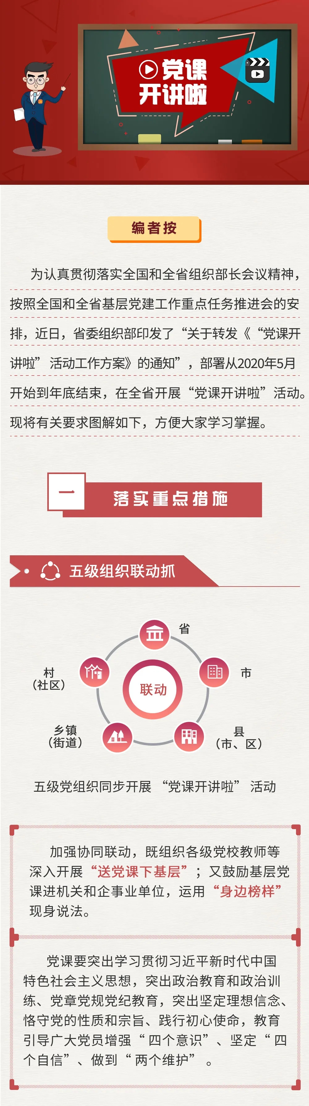 習近平強調(diào),這次主題教育在中央政治局常委會領(lǐng)導(dǎo)下開展。各級黨委(黨組)要把主體責任扛起來,主要領(lǐng)導(dǎo)同志要擔負起第一責任人責任。黨委(黨組)成員要認真履行“一崗雙責”,對分管領(lǐng)域加強指導(dǎo)督促。領(lǐng)導(dǎo)機關(guān)和領(lǐng)導(dǎo)干部要先學一步、學深一點,先改起來、改實一點,同時要擔負好領(lǐng)導(dǎo)指導(dǎo)責任,抓好所屬單位黨組織的主題教育。各級黨委(黨組)要加強督促指導(dǎo)。中央指導(dǎo)組要進行巡回指導(dǎo),加強對各地區(qū)各部門各單位開展主題教育的督促指導(dǎo)。省區(qū)市黨委和行業(yè)系統(tǒng)主管部門黨組(黨委)要派出巡回指導(dǎo)組。要宣傳正面典型,宣傳黨員干部身邊可信可學的先進人物,推廣一批可復(fù)制可普及的好經(jīng)驗。要深刻剖析反面典型,以案例明法紀、促整改,發(fā)揮警示作用。